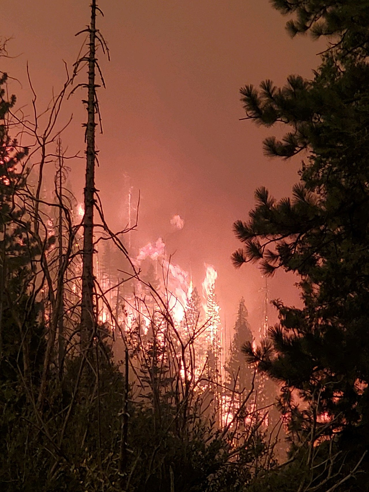 - Several large fires all sparked by lightning combined into one.